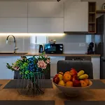 Quest'appartamento è dotato di un angolo cottura attrezzato, che include un microonde, una macchina per caffè e tè e utensili da cucina, per garantire la massima comodità.